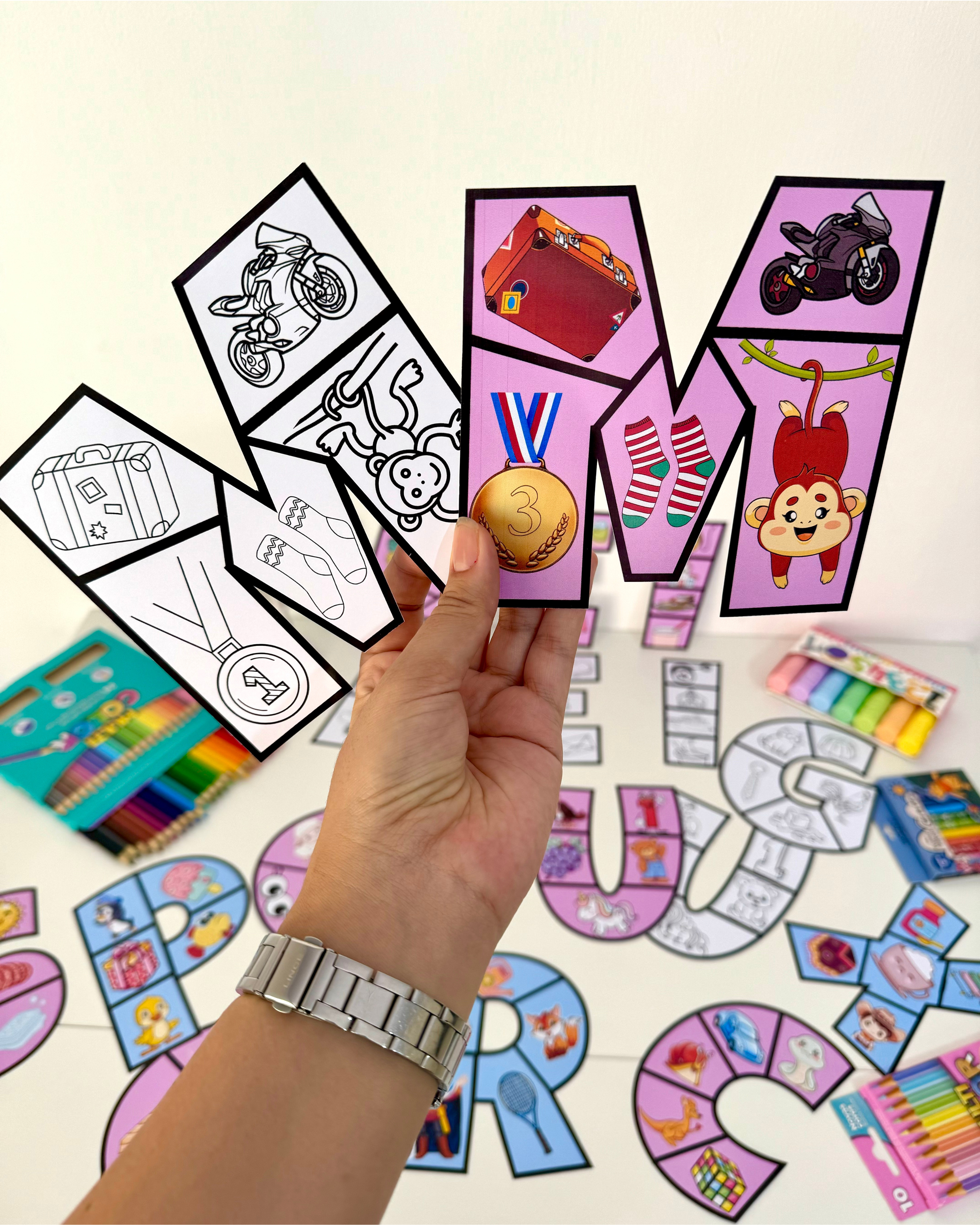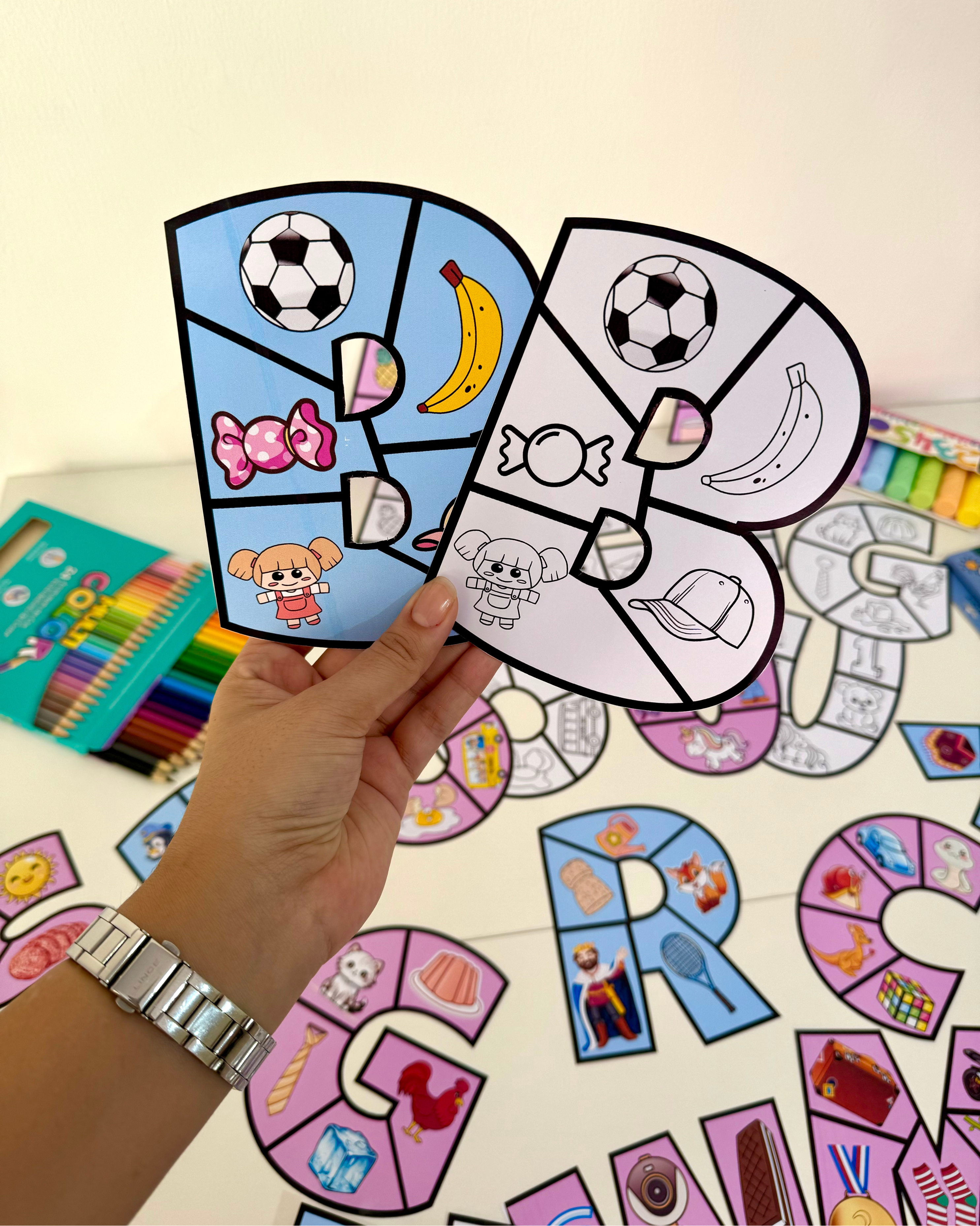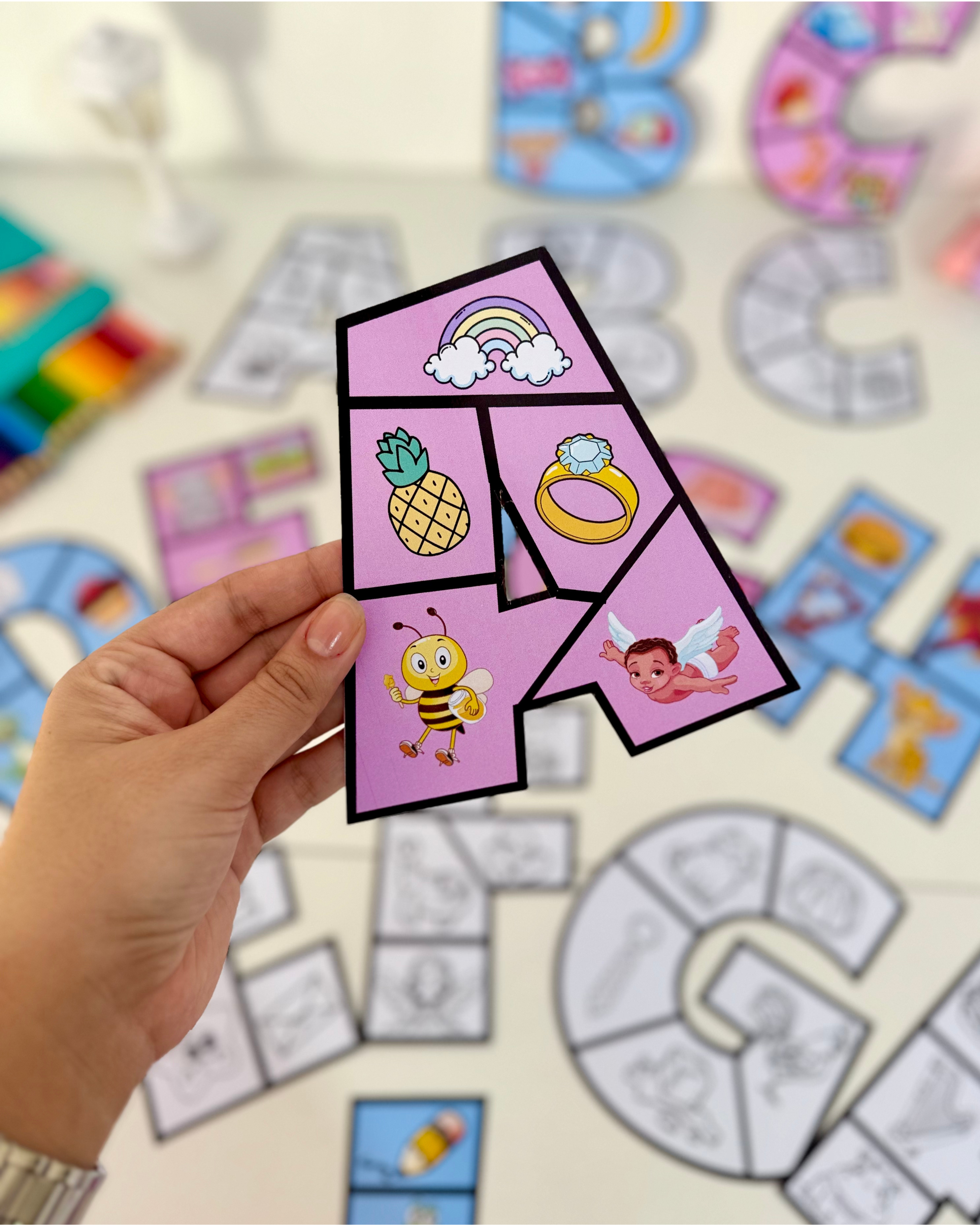 1. Como recurso de mesa, em que a criança deverá montar o quebra-cabeça da letra