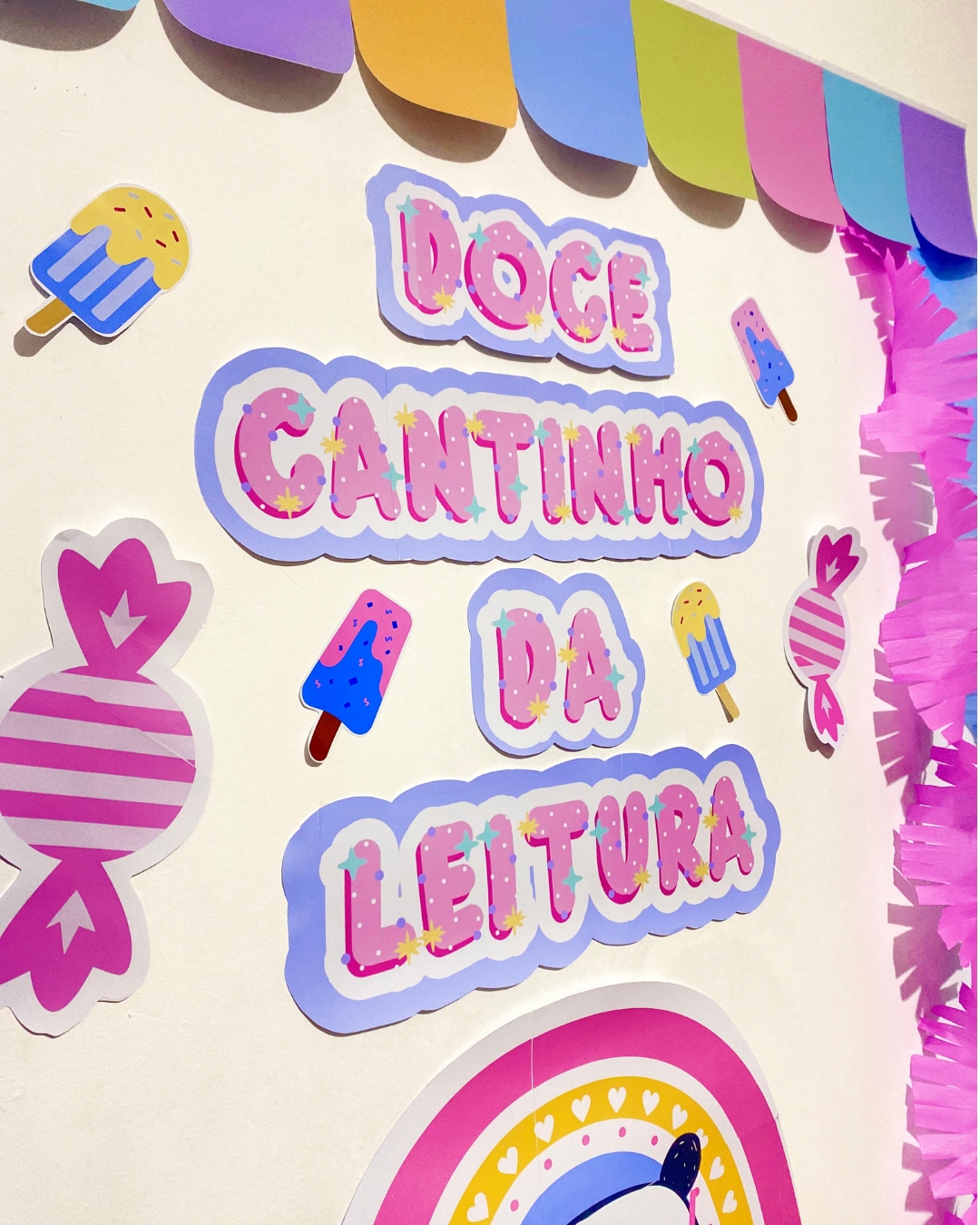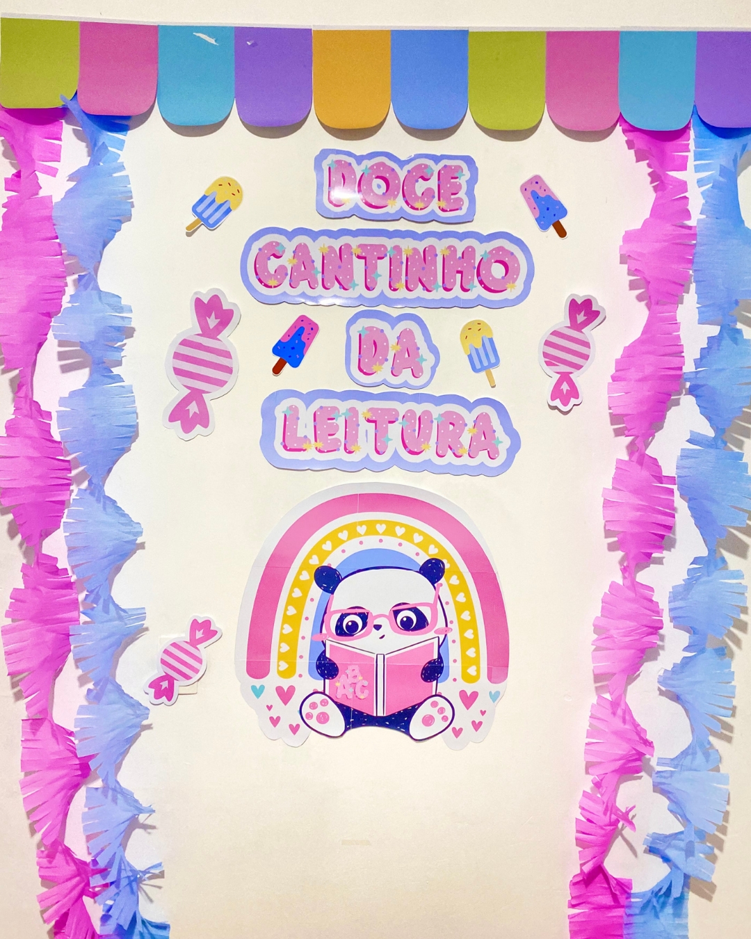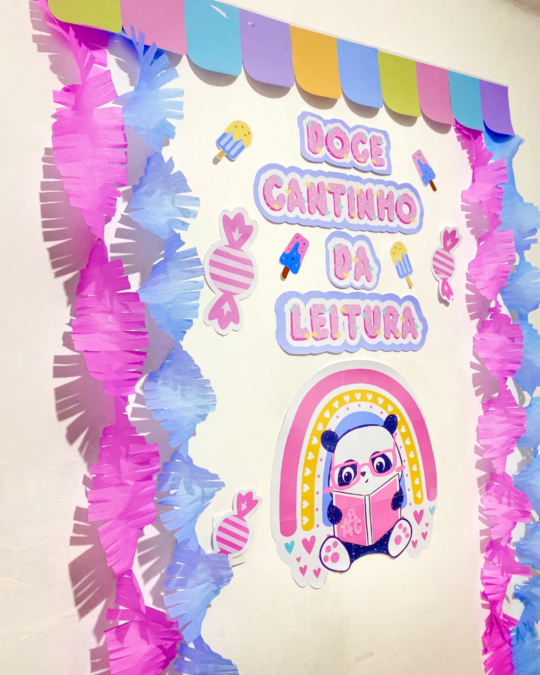 📚 Painel Ampliado Doce Cantinho da Leitura: Um mural colorido e interativo que torna o espaço de